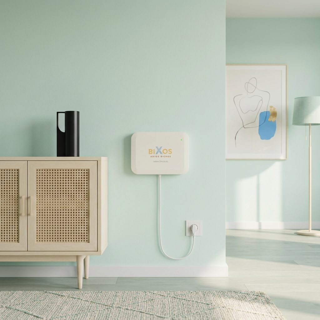 Instalación rápida y funcionamiento continuo. BiXos se orienta a reducir humedad por capilaridad y a mejorar las condiciones del entorno. Como plus, aporta un efecto disuasorio auxiliar para insectos asociados a zonas húmedas en paredes y estructuras.